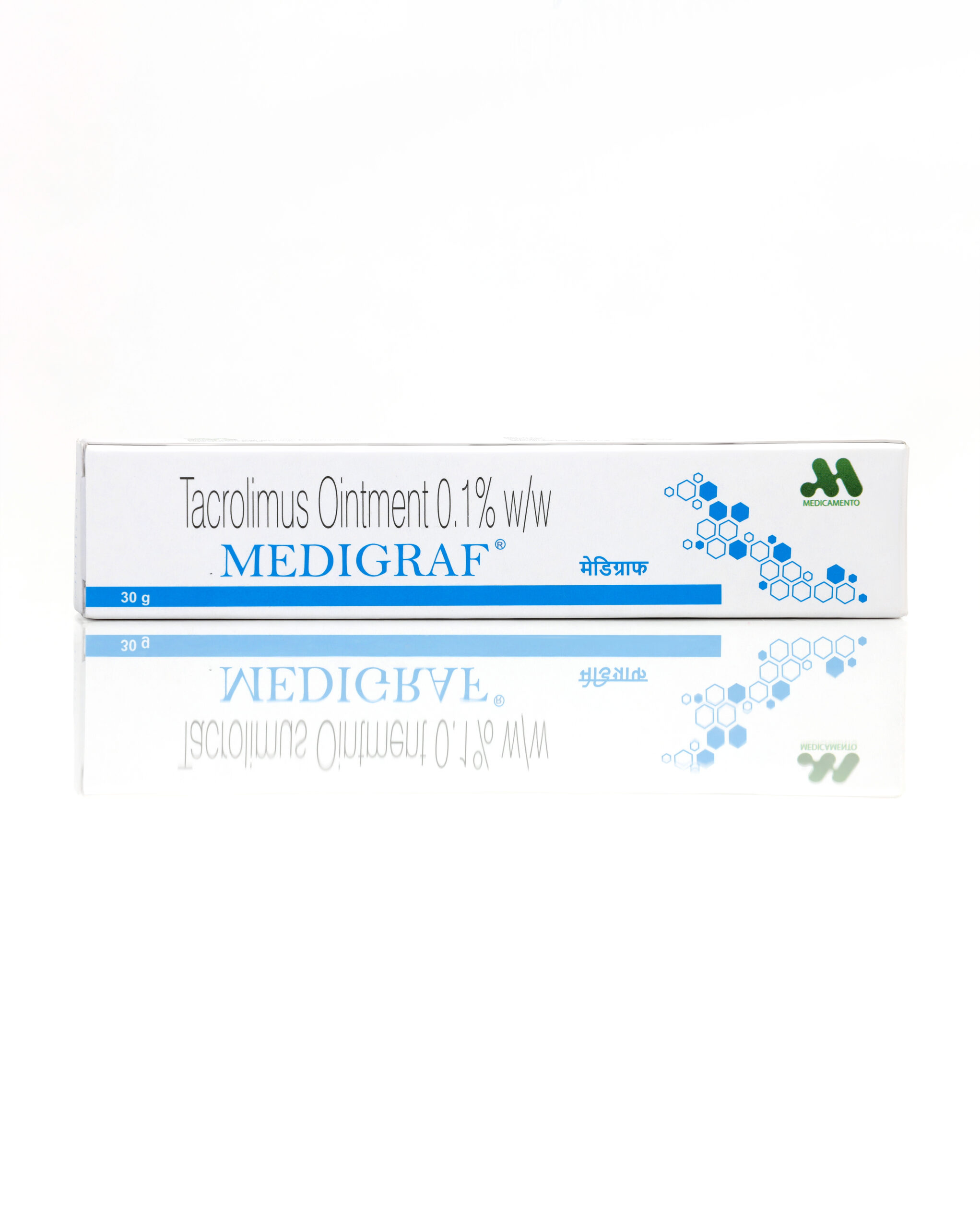 MEDIGRAF Ointment is used to treat eczema (atopic dermatitis). It works by suppressing the activity of certain immune cells that cause inflammation (redness and swelling) of the skin. This relieves itching and improves rashes in atopic dermatitis.